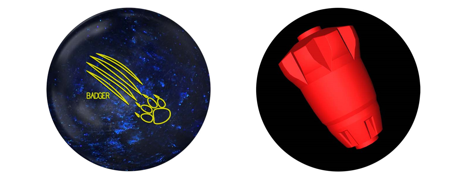 The Badger is the second ball from 900 Global to feature a traditional two-piece design. It differs from the first such ball, the Honey Badger, in both core design and coverstock. The Badger uses a symmetrical core shape with identical RG and differential to the Honey Badger and a hybrid version of the S71 cover. The changes from the asymmetrical core shape and pearlized coverstock that were on the Honey Badger to the symmetrical core and hybrid cover on the Badger help increase its midlane read and smooth out its motion off the dry. This reaction makes the Badger extremely user-friendly across multiple types of conditions.
