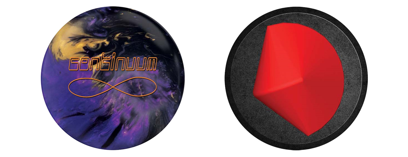 The Continuum is the first of a series of new nameplates for 900 Global this summer. This ball will be in their Tour Engineered 900 Series line, joining the Inception DCT and Inception DCT Pearl. The Continuum uses a new low RG, high differential, high intermediate differential core named Ellipticon Asymmetric. This new design revs up quickly while offering a large amount of track flare potential. The Ellipticon core is surrounded by the new S82RX Hybrid coverstock. This aggressive cover is finished with a 2000 Abralon pad, allowing it to start reading the lane very quickly.