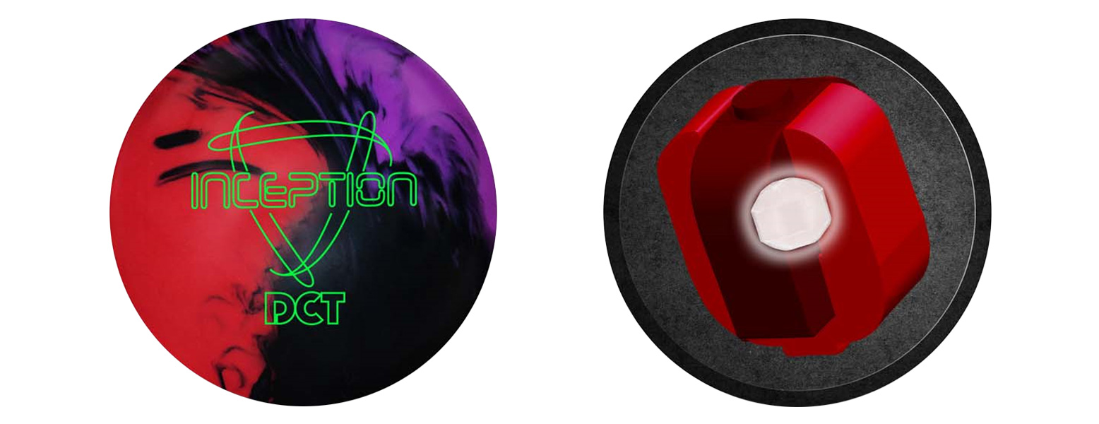 The Inception DCT features new technology inside and out to provide the most total hook in the current 900 Global line. Starting on the outside, the coverstock is a new solid formulation called S86R Solid that is stronger than the S74R Solid cover that was used previously on the Inception and Truth bowling balls. This cover has a different look to it because of 900 Global’s new ICE finishing process. This ball is finished with the 1500 grit ICE “I” pad, giving it the traction to tear through any volume of oil. Moving inside the ball, the Adaptor/D weight block has been modified with a ceramic nugget in the center. Related to this addition, bowlers will notice a sticker over the pin, warning consumers about drilling the holes too deep. The changes to the weight block give the Inception DCT the same low RG (2.48″) and strong differentials (0.055″ and 0.024″) as the Inception and Inception Pearl.