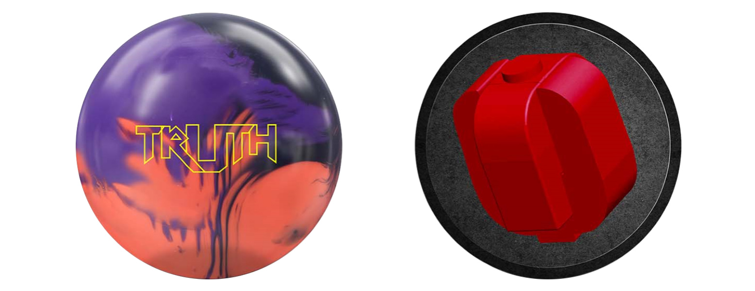 The Truth is the newest ball to enter 900 Global’s Prime series, joining the Respect Solid, Respect Pearl, and original Respect. This ball uses the same S74R Solid coverstock as the Inception and a different version of the Adaptor core called Adaptor/C. This weight block provides the same RG and differential as the asymmetrical Adaptor/D core in the Inception, but this new version has symmetrical mass properties.