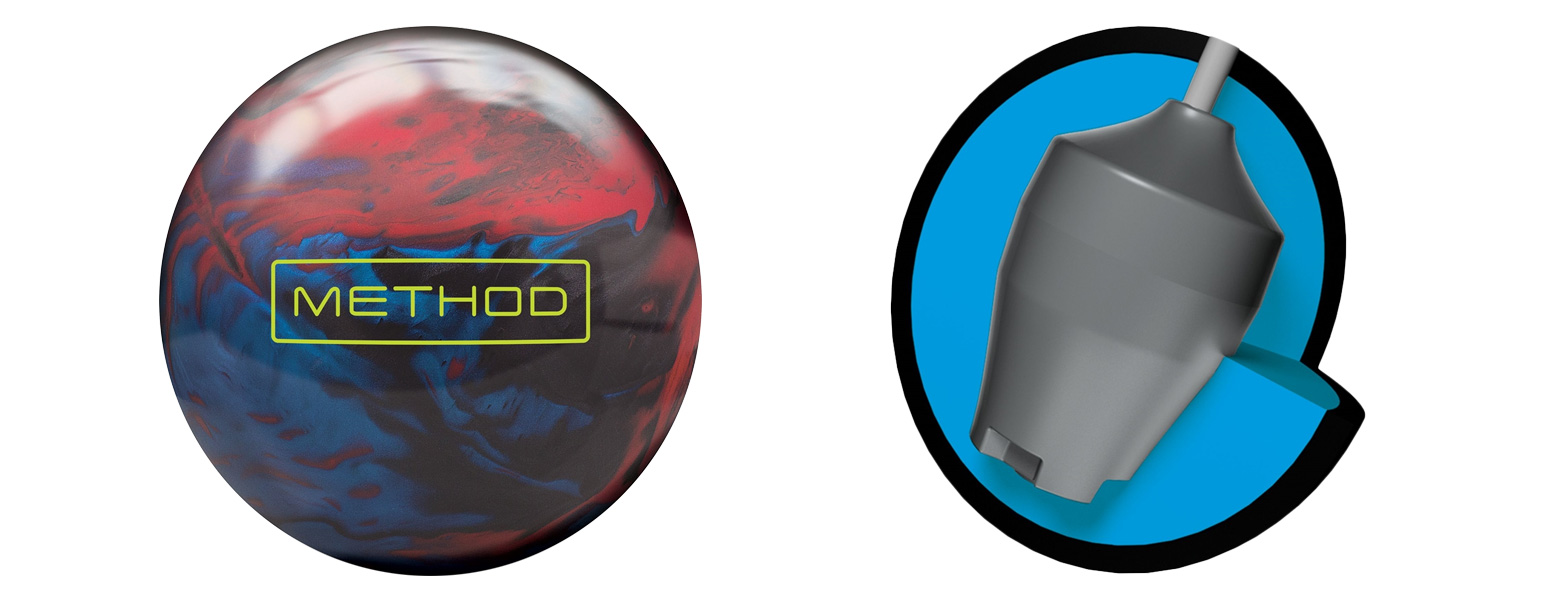 With a new naming strategy and reconfiguration, Brunswick now has four lines of performance bowling balls this season. The Method joins the Magnitude 055 and Magnitude 035 Pearl in the High performance line, which falls just beneath their Pro performance line. The Method uses the new Synthesis Hybrid coverstock, which comes out of the box with a 500/3000 SiaAir sanded finish. This shell surrounds Brunswick’s DynamiCore filler material and the Magnitude 055 High Diff symmetrical weight block, giving the Method an RG of 2.499″ and a total differential of 0.055″.