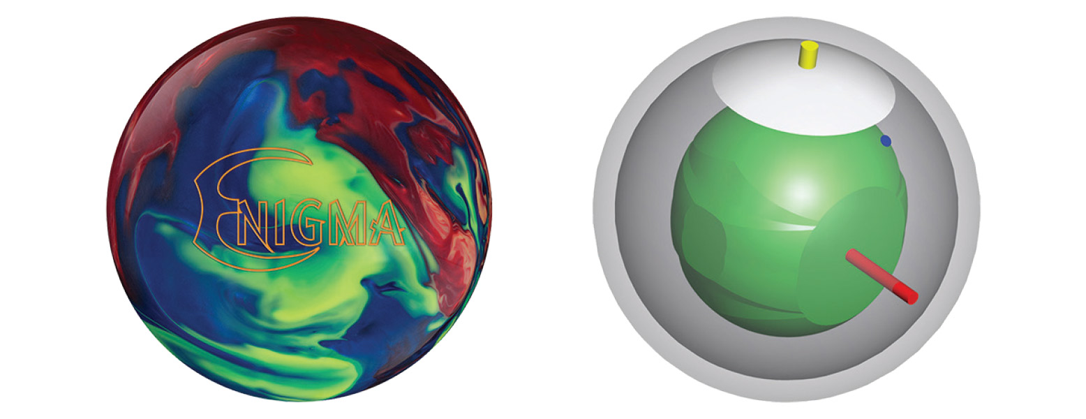 The Enigma is the newest addition to Columbia 300’s high performance line. This ball utilizes the core properties and shape used in the last two releases at this price point, the Wicked Encounter and the Dark Encounter. The core is surrounded by the new TFT coverstock and finished with an 800/800/1500/1500 Abranet like the Wicked Encounter. This combination gives bowlers a ball that provides the same back end motion as other Columbia 300 products but even more traction in the oil.