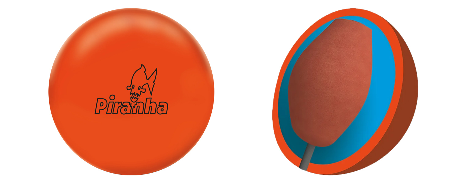 The Piranha Solid is the latest reintroduction of a retro nameplate and color scheme for Columbia 300, and it follows in the footsteps of the Piranha PowerCOR and Piranha PowerCOR Pearl as the third Piranha-line throwback release. The bright orange Piranha Solid’s core shape doesn’t have the PowerCOR nugget, raising the RG from 2.518″ to 2.554″ and lowering the differential from 0.055″ to 0.043″. It comes out of the box at a rough 500/1500 SiaAir finish, which gets the ball to rev up very strongly in the midlane while offering a controllable, smooth, and continuous motion on the back end. All three of our bowlers really struggled to get this ball to store enough energy for our dry oil pattern, seeing very early friction and struggling to create enough length, but they really liked it across the other three test patterns.