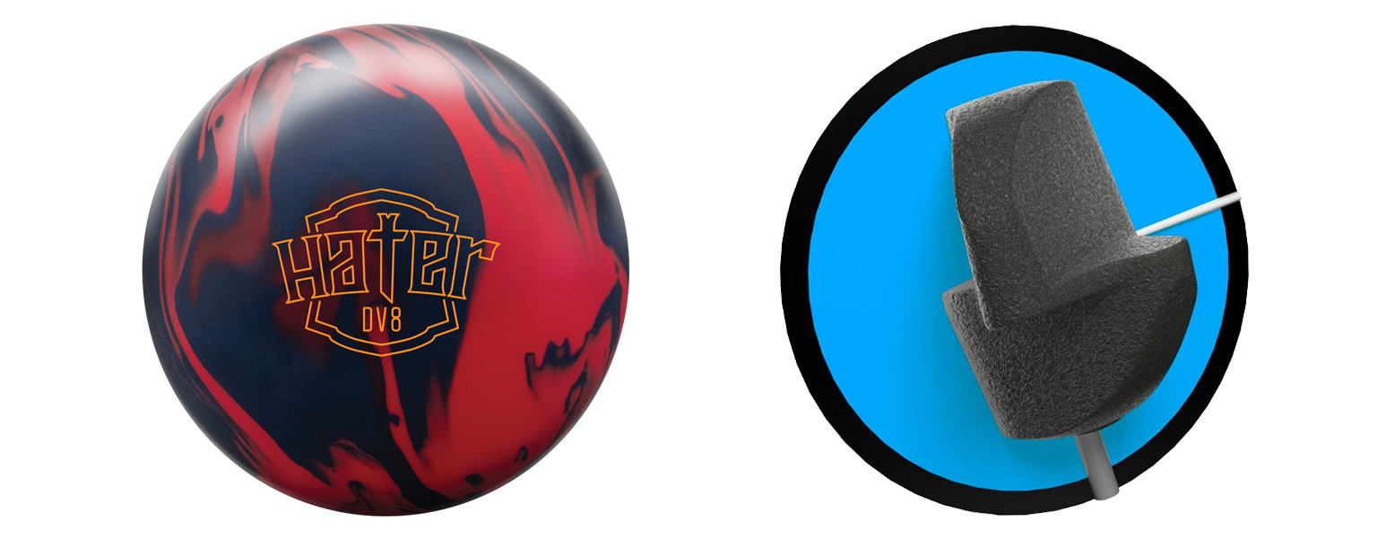 The Hater introduces a new coverstock and a new asymmetrical core design to the DV8 lineup. The new Hater weight block is a higher RG (2.539″), high total differential (0.054″), and high intermediate differential (0.024″) design that helps keep the Hater’s rough box finish from wanting to start too early and burn off too much energy. The new HK22-based Havoc Hybrid cover produces decent length for a shell that comes out of the box sanded at 500/1500 SiaAir. We had excellent traction in the midlane and good continuation at the back end in our testing. The more oil that was on the lane, especially in the front of the lane, the better the Hater rolled for us.