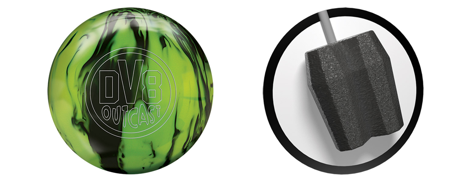 The DV8 Outcast introduces the new Outcast symmetrical core into the entry level price point for DV8. This new core shape offers a similar RG to the core in the Misfit, but with a differential that is just slightly lower. The coverstock is the same Class 1 Reactive that was used on the Misfits and, like those balls, the Outcast is a good fit for medium conditions.