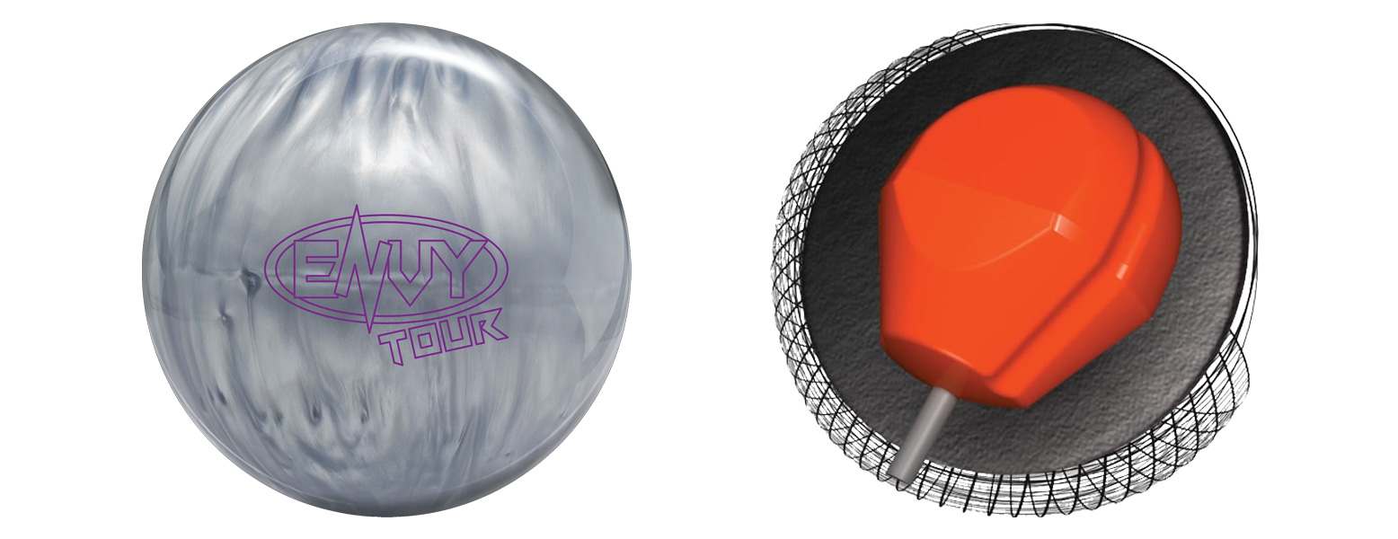 The Envy Tour Pearl is the successor to the Obsession Tour Pearl in the current Hammer line. This ball uses the same low RG and low differential Obsession Tour core design, but with a big update to the cover. Instead of the Tour V2 Pearl coverstock, this ball uses the HK22 base in a new pearl coverstock that features a glossy box finish. This change allows the Envy Tour Pearl to be much more angular off the end of the pattern while adding more total hook. All three bowlers found our medium oil pattern to be where they had their best reactions with this ball on the fresh.