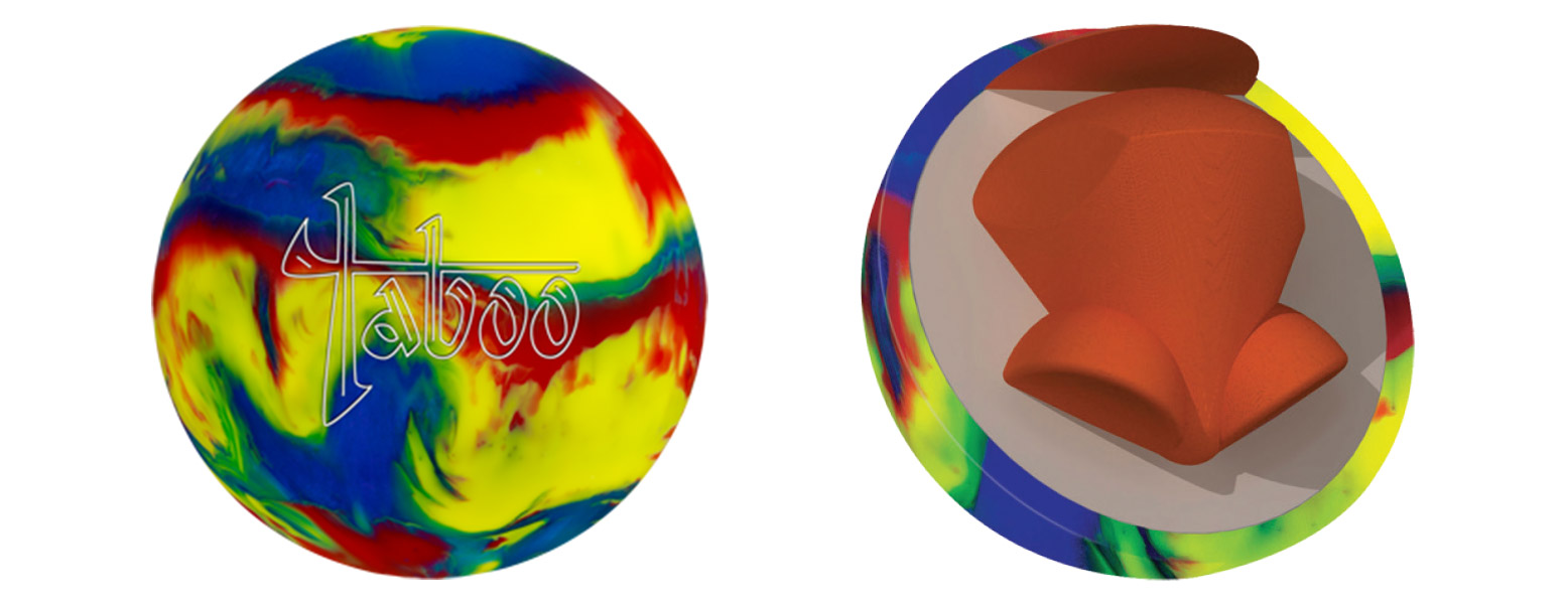 The new Taboo Spare is a ball that is sure to spark interest. Hammer has taken the Gas Mask core and inserted it into a brightly colored polyester coverstock.