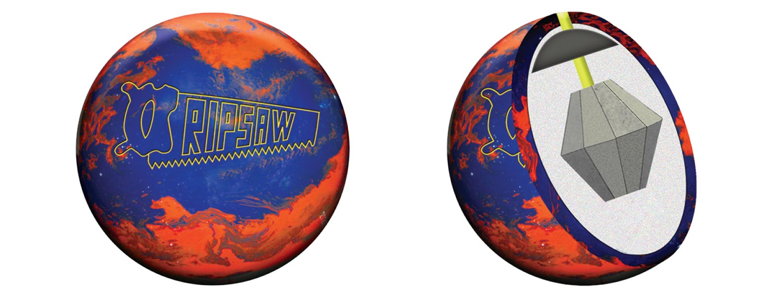 The Ripsaw is the latest upper-mid priced release from Lane #1. This ball uses a symmetric, high RG version of the Back Cut Diamond core shape. The cover is the older Bleeder formulation used on balls like the Pink Panther and Buzzsaw THS.