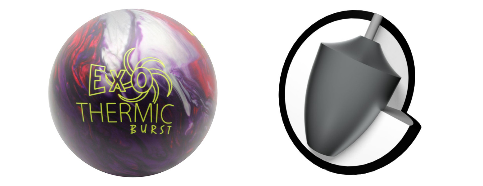 The Exothermic Burst is the second symmetrical ball released into the Moxy line. The shape and properties of its weight block have been altered from what was used in the original Exothermic to reduce the RG of this ball down to 2.487″. The differential, however, remains the same at 0.050″, offering up to five full inches of track flare. The Exothermic Burst features a pearlized coverstock, but at a rougher box finish than the original Exothermic. The Burst comes out of the box at a 500/4000 SiaAir finish. All three testers saw this ball rev up and pick up the lane quicker than the Exothermic on our test patterns.