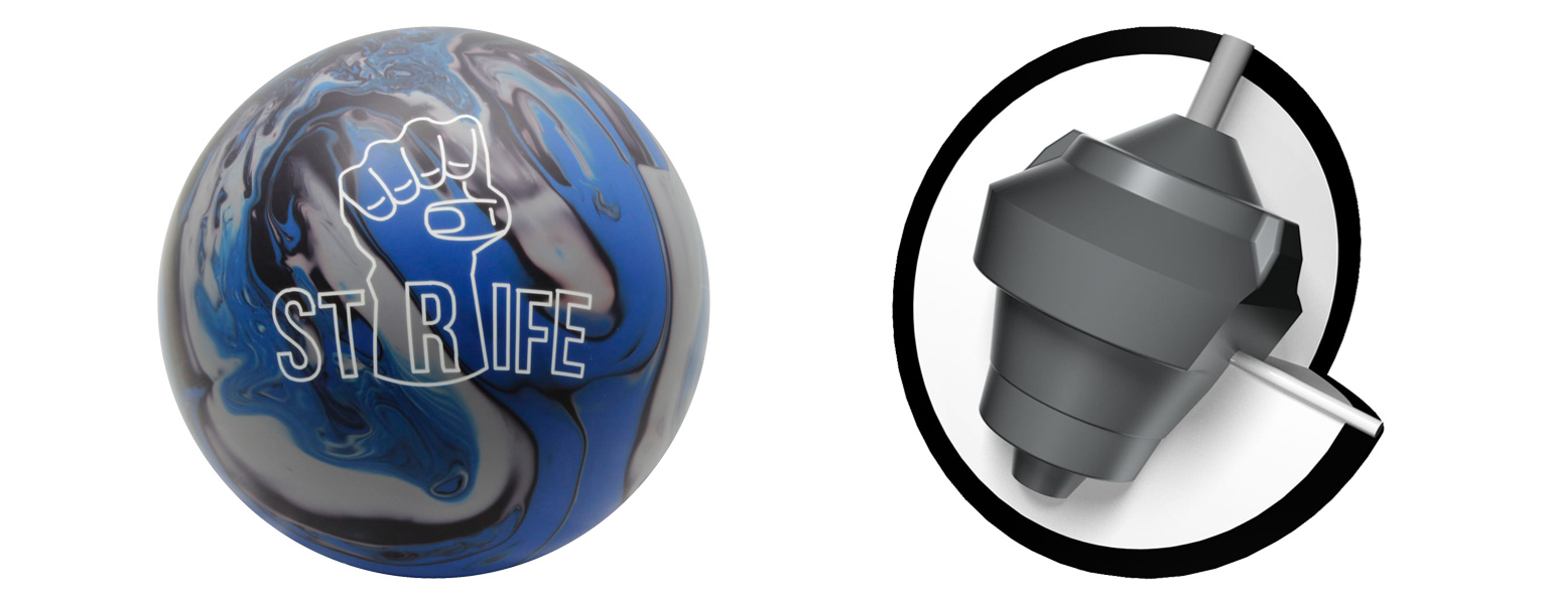 The Strife is the biggest hooking ball in the Moxy line. It accomplishes this in part by using a low RG (2.480″) and high differential (0.056″) asymmetrical (0.017″) core. The new Strife Solid Reactive veneer is Moxy’s most abrasive coverstock, amplified by its rough 500/2000 SiaAir box finish. This sanded surface allows the Strife to pick up the lane early, making this the best Moxy ball for heavier and longer oil patterns.