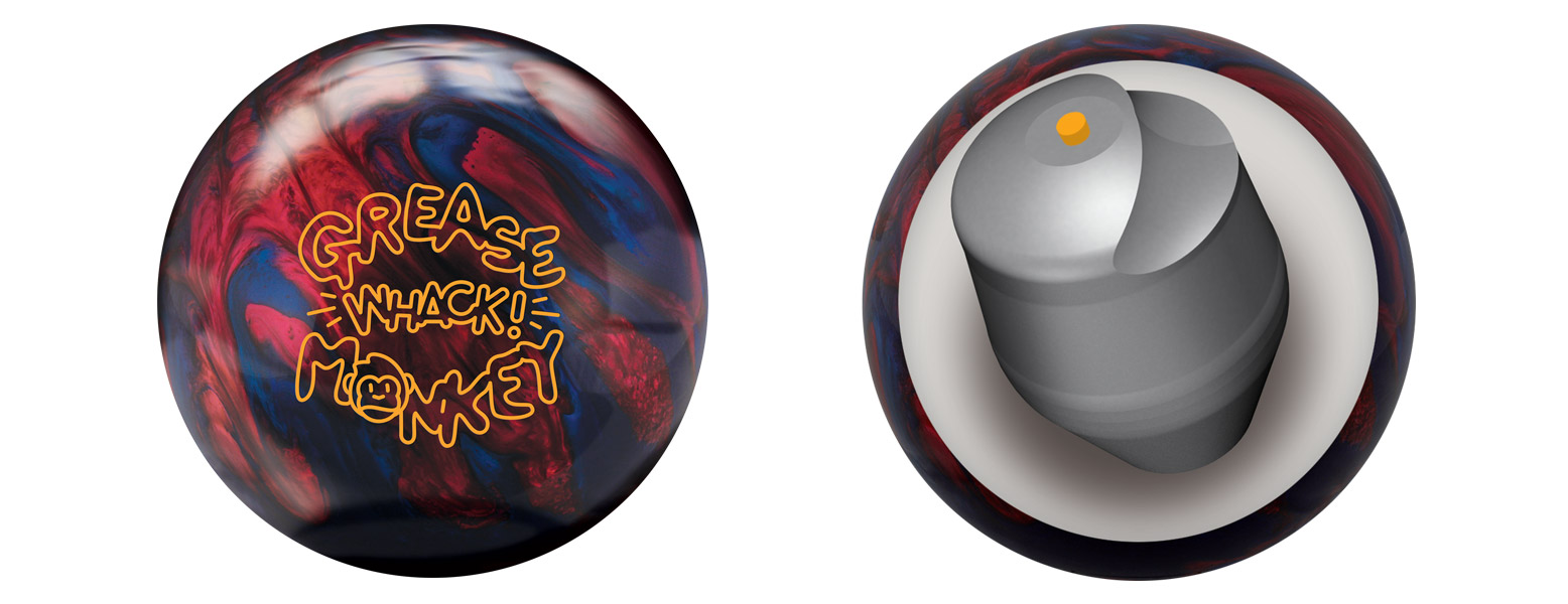 Radical’s new Grease Monkey Whack is the third entry into the Monkey family. This is the second time a reactive hybrid coverstock will encase the Grease Monkey core design that has remained unaltered in this version. This cover is stronger both in the oil and at the back end than the first Grease Monkey.