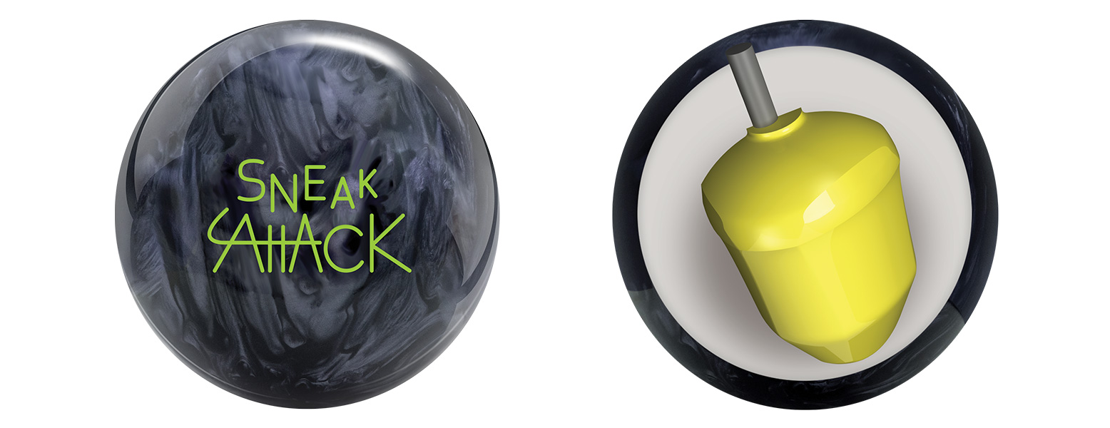 The Sneak Attack is the latest symmetrical entry into Radical’s EZ-Use line. This ball uses the new Sneak Attack Symmetric core shape, which gives it an RG of 2.544″ and a differential of 0.036″. This is a lower flaring design than the cores used in the Payback, Bigfoot, and Double Cross, with a much higher RG than the Intel Pearl SE. The Sneak Attack also features the new MTH-1 hybrid coverstock, which comes out of the box at 2000 grit with Crown Factory Polish on top. The ball’s polished cover and higher RG core make it very clean through the front of the lane, and its lower flare potential makes it ideal for drier conditions.