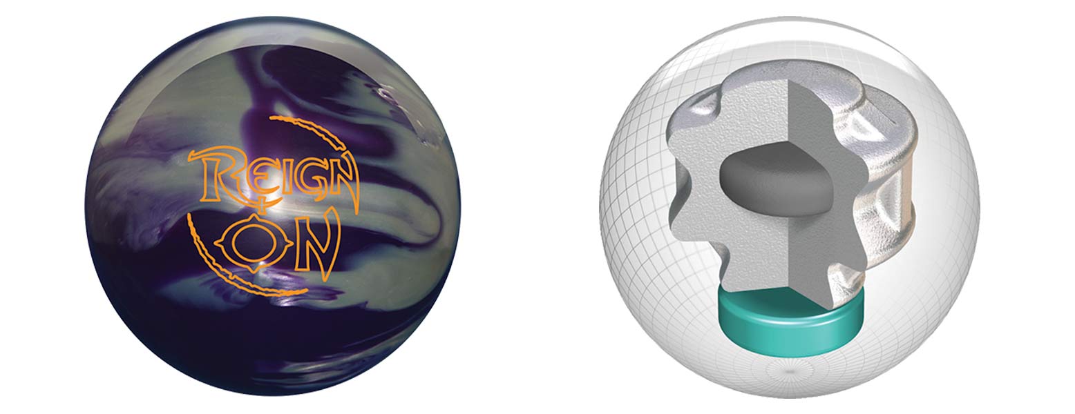 The Reign On is the newest ball in Storm’s Thunder line for the fall season. This ball uses the popular CAM core and a sanded version of Storm’s R2S Hybrid Reactive coverstock. This ball comes out of the box with 4000 Abralon, much higher than the 1000 Abralon out of box finish of the Reign of Power. The result is a ball that has much more angle at the back end.