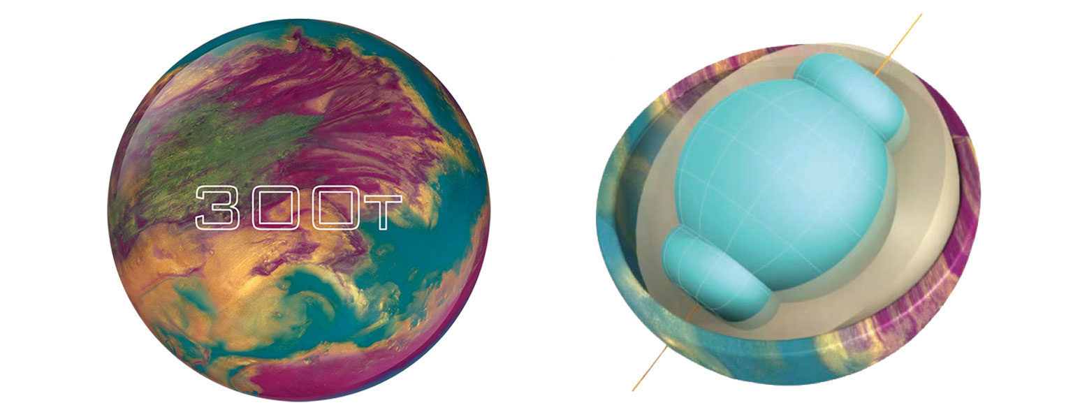 The Track 300T utilizes the same symmetrical core as the 300C. The RG and differential numbers are the same. The only difference is that this ball uses the sanded solid version of the LMP GEN1 cover called LMP GEN1T Solid and, as a sanded ball, it will read the lane much sooner, making it best suited for lanes with a little more oil.