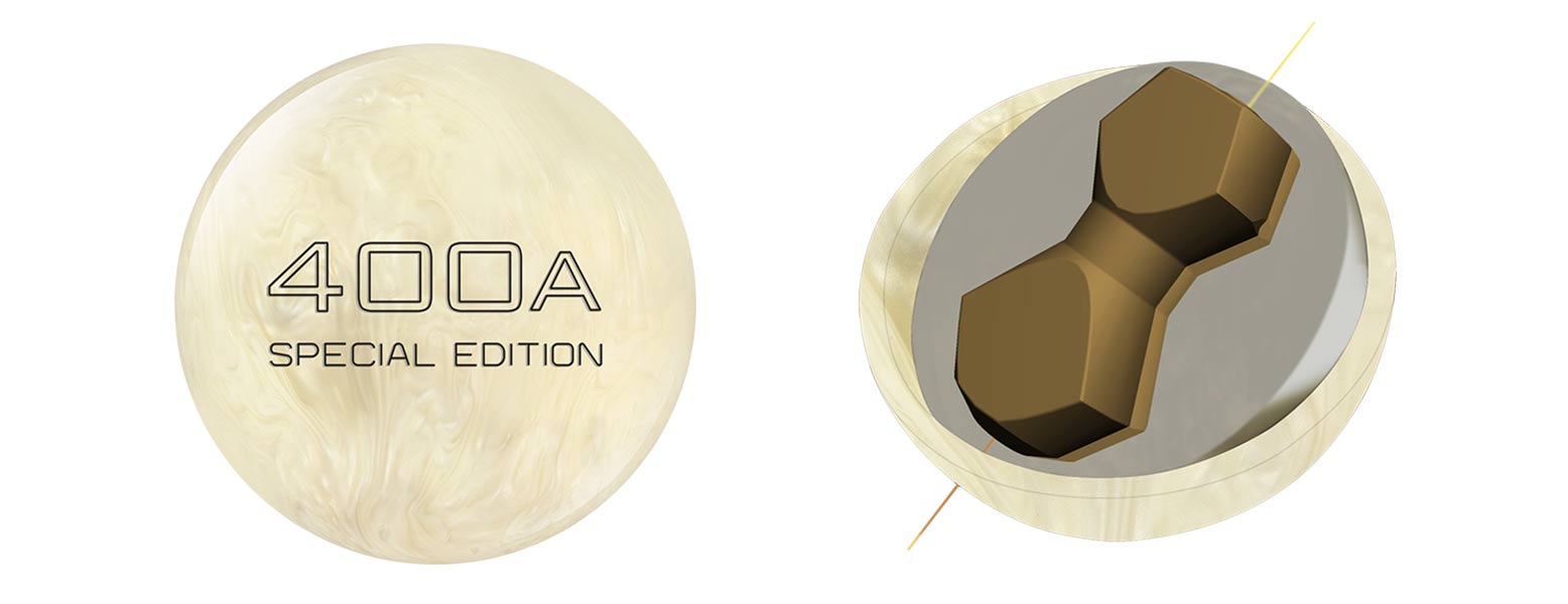 The 400A Special Edition is the newest symmetrical cored release from Track. The white color of this ball will not be confused for anything else sitting on the rack or going down the lane. The 400A Special Edition is a combination of the DNA core first used in the 300C Solid with a new pearlized cover formulation called Luxury MA.