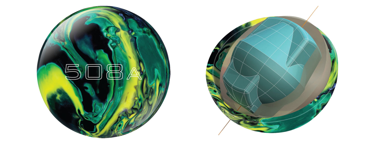 The 508A is the newest bowling ball from Track. This ball is both a new ball with the “A” Angular motion as well as a new 5 series ball. The core shape is taken out of the 607A Special Edition. The numbers were altered from that ball to raise the RG and slightly raise the differential. This ball also uses a new coverstock formula. The MP Gen 4 Reactive Pearl with Performance Additive pushes down the lane easily, saving its power for the back end movement.