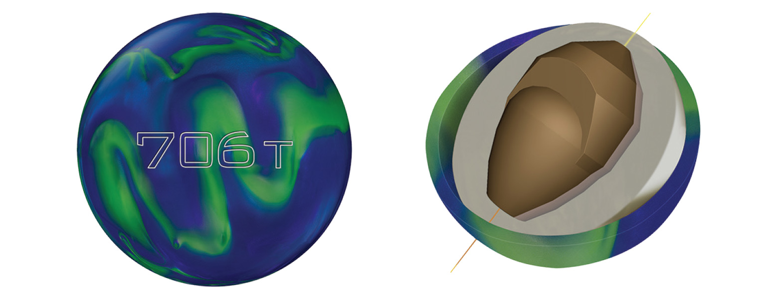 The 706T uses the Helmet core that was the engine in the 706A and wraps it with the Gen XT coverstock finished with a 2000 Abralon pad. This creates strong traction in the midlane and keeps going from the breakpoint through the pins.